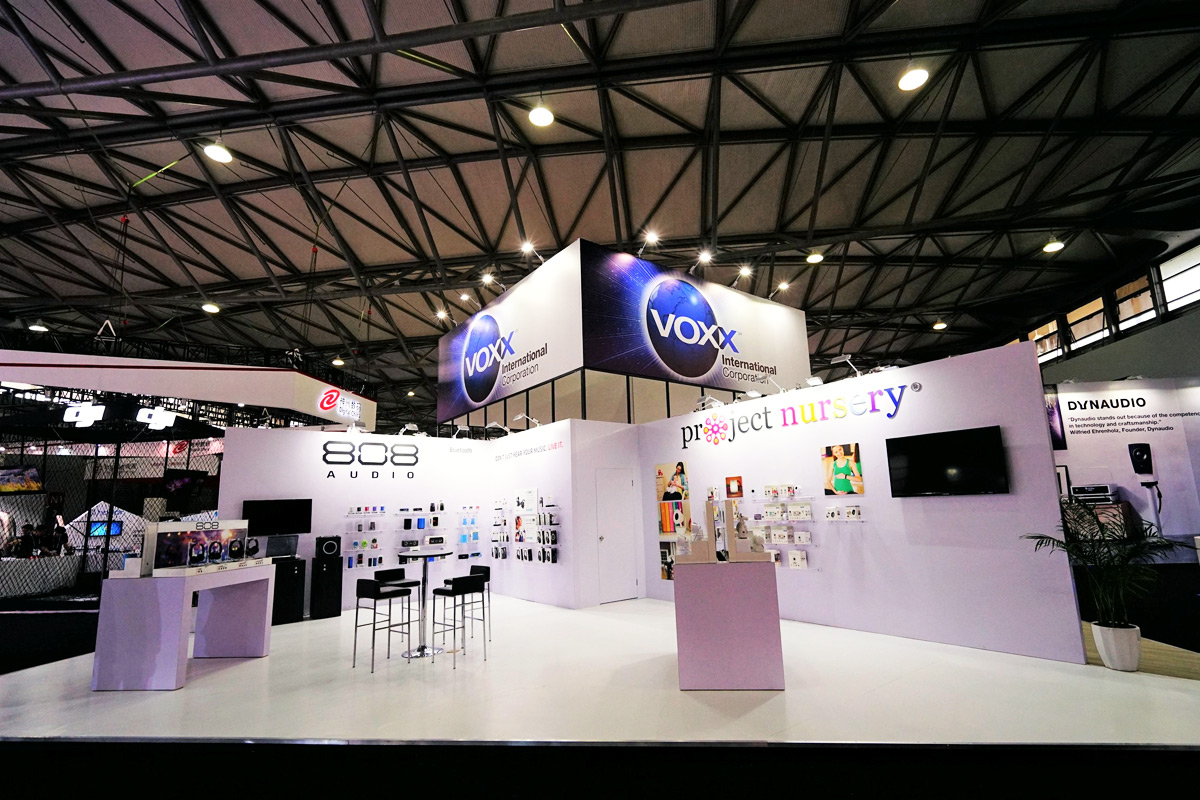 A well-known consumer electronics company, Voxx International has acquired numerous recognizable brands throughout their history. For both their U.S. and International shows, the challenge is to equally showcase distinctive brands with different product lines under the Voxx parent company.